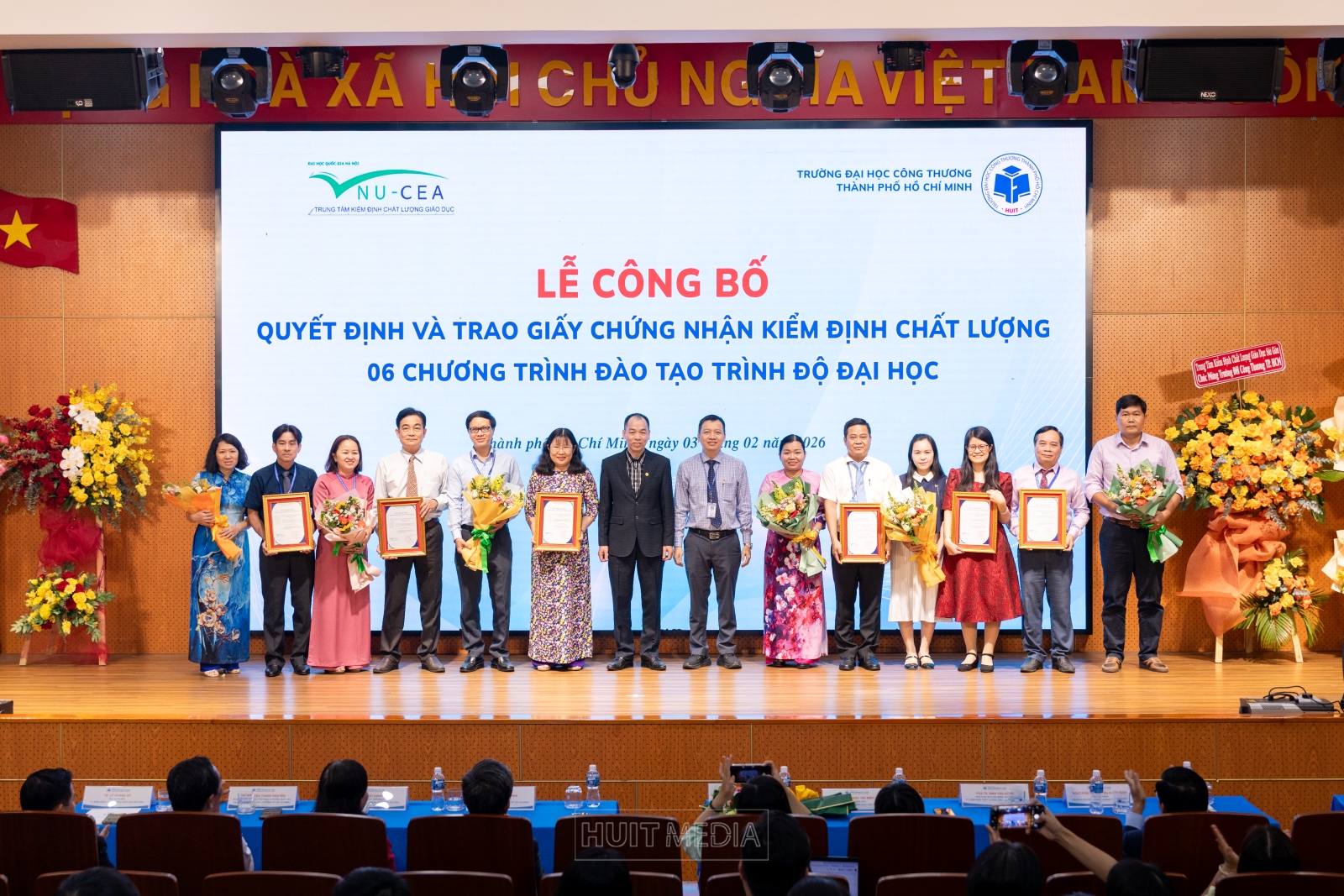 Chiều ngày 03/02/2026, Trường Đại học Công Thương (HUIT) đã tổ chức Lễ công bố quyết định và trao Giấy chứng nhận kiểm định chất lượng 15 chương trình đào tạo các trình độ của Nhà trường. Buổi lễ được tổ chức nhằm ghi nhận những nỗ lực bền bỉ, tinh thần trách nhiệm và sự đồng lòng của toàn thể Nhà trường trong hành trình không ngừng nâng cao chất lượng đào tạo, đáp ứng yêu cầu của xã hội và hội nhập giáo dục đại học.