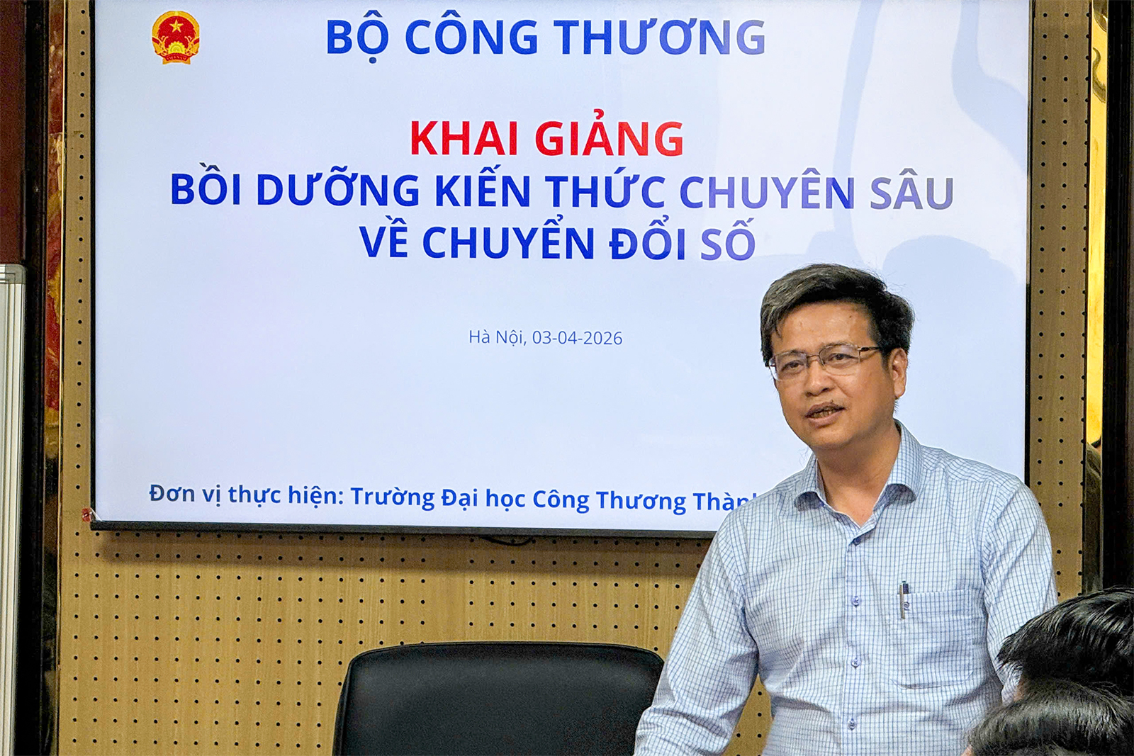 Sáng ngày 08/4/2026, tại trụ sở Bộ Công Thương, Vụ Tổ chức cán bộ phối hợp cùng Trường Đại học Công Thương TP. Hồ Chí Minh (HUIT) đã tổ chức lớp bồi dưỡng kiến thức chuyên sâu về chuyển đổi số năm 2026 dành cho cán bộ, công chức Cục Đổi mới sáng tạo, Chuyển đổi xanh và Khuyến công. Hoạt động góp phần lan tỏa tinh thần đổi mới sáng tạo, thúc đẩy ứng dụng trí tuệ nhân tạo trong thực thi công vụ và nâng cao năng lực số cho đội ngũ cán bộ ngành Công Thương.