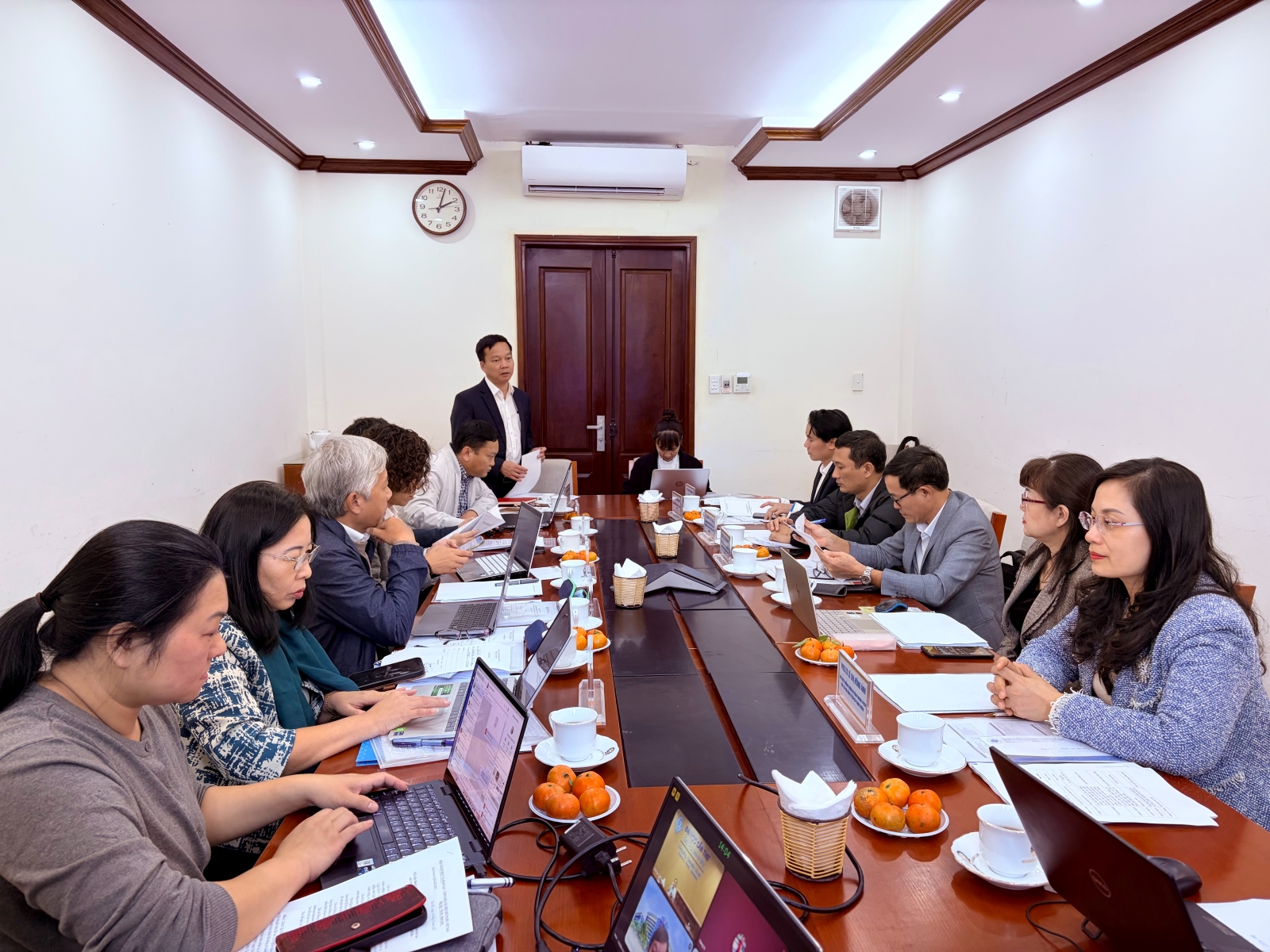 Trong phần điều hành chuyên môn, GS.TS. Trang Sĩ Trung – Phó Chủ tịch Hội đồng Trường, Nguyên Hiệu trưởng Trường Đại học Nha Trang, Chủ tịch Hội đồng thẩm định đã quán triệt nguyên tắc làm việc, định hướng các nhóm nội dung cần tập trung thảo luận nhằm bảo đảm dự thảo chuẩn đạt yêu cầu khoa học, nhất quán và có khả năng áp dụng thực tiễn.