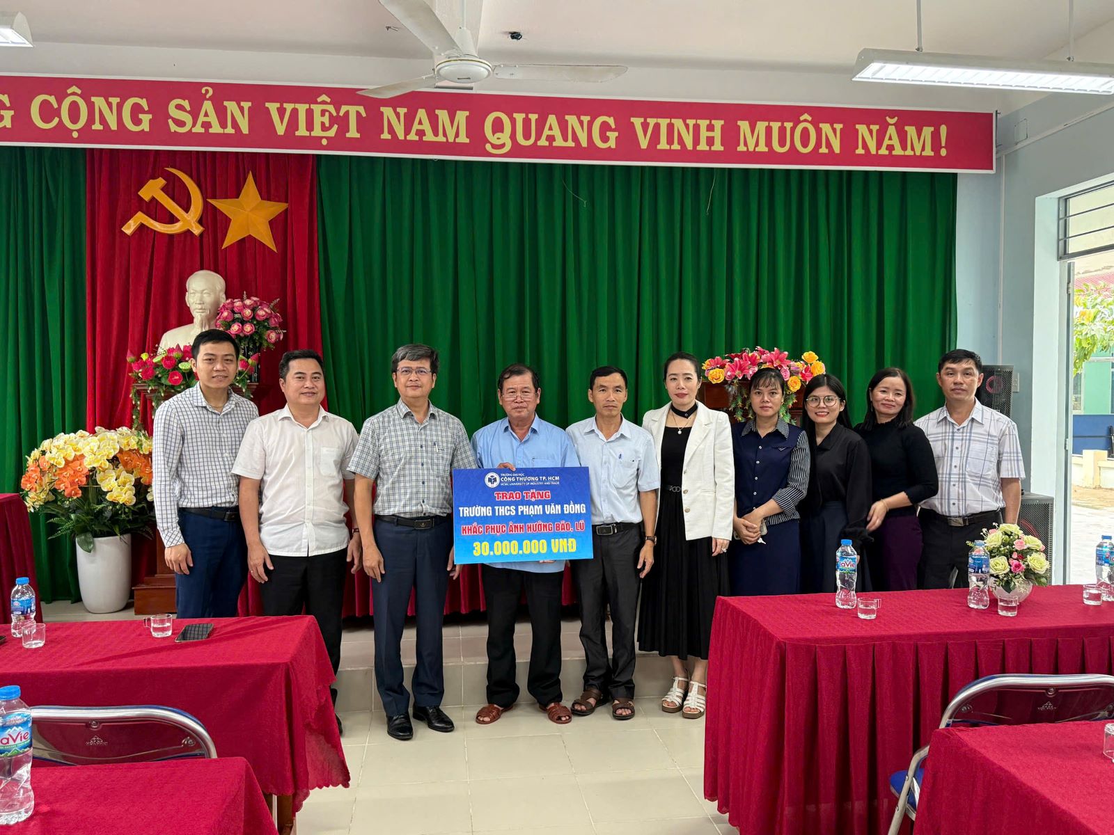 Hình ảnh Thầy TS. Bùi Hồng Đăng trao tặng hỗ trợ cho trường THCS Mỹ Thắng